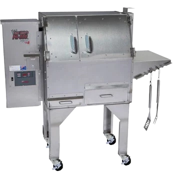 The only pellet grill on the market that uses charbroiler technology, allowing you to get the same great flavor as the high-end commercial grade charbroilers. If you can't see the fire, you're just cooking in an oven. This pellet grill is stainless steel with front opening doors and has an easy to use front-access ash drawer which makes ash removal simple. Leaves behind about 3% ash. Proudly made in the USA!